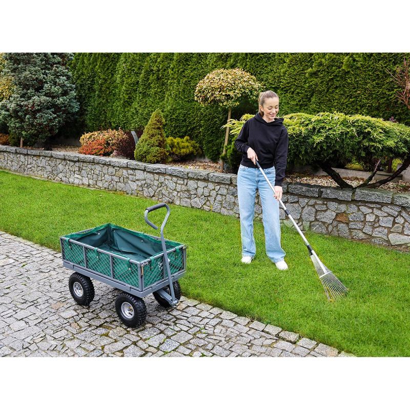 Odpinany pokrowiec, ten wózek oferuje wszechstronność i wygodę. Pokrowiec chroni przewożone materiały przed zabrudzeniem i wilgocią, a jednocześnie można go łatwo zdjąć, by wózek wykorzystać do transportu większych lub niestandardowych ładunków. To praktyczne rozwiązanie, które sprawdzi się zarówno w ogrodzie, jak i podczas wycieczek czy prac budowlanych. Funkcjonalność i ochrona w jednym!