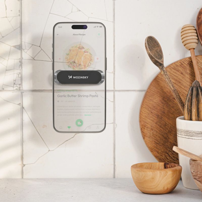 Z uchwytem Wozinsky WMH-01 w zestawie otrzymujesz samoprzylepną, metalową płytkę, którą należy przykleić do obudowy telefonu lub etui. Wbudowane w uchwyt magnesy będą stale przyciągać blaszkę, przytrzymując telefon w miejscu. Płytka ma niewielkie rozmiary, pasuje więc do wielu modeli i wielkości telefonów. Wozinsky WMH-01 to bardzo uniwersalny uchwyt!
