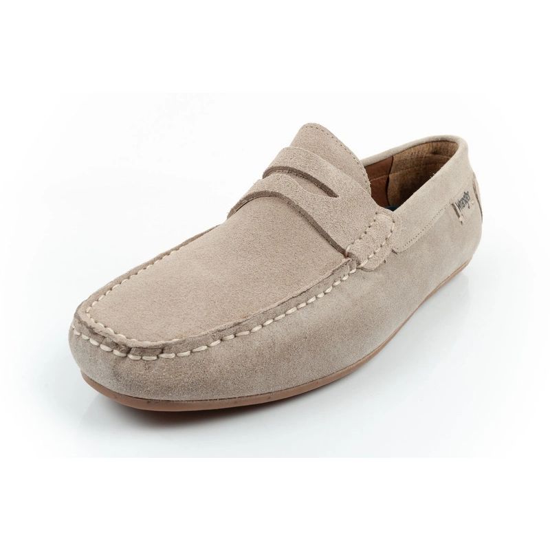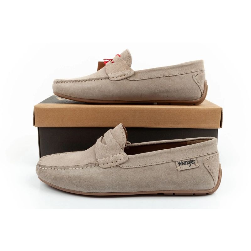 Wrangler buty męskie półbuty mokasyny Maifield Suede skóra naturalna beżowe