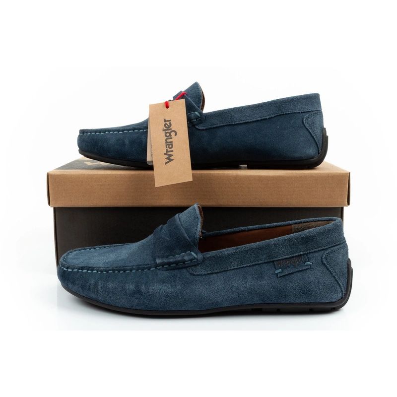 Wrangler buty męskie półbuty mokasyny Maifield Suede skóra naturalna granatowe