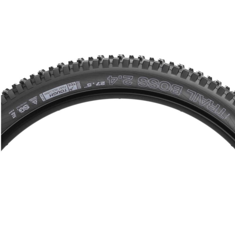 - Trail Boss 2.4/2.6 ma nacięte klocki, które maksymalizują przyczepność podczas hamowania, a ich stosunkowo ciasne odstępy poprawiają żywotność tylnej opony, zwiększając całkowitą powierzchnię przeciwdziałając silnym siłom hamowania. Większe, boczne klocki wystają poza boczną ścianę opony, chroniąc ją przed przecięciami podczas kierowania tyłem. Sugerujemy połączenie Trail Boss 2.4/2.6 z Vigilante 2.5/2.6 z przodu.