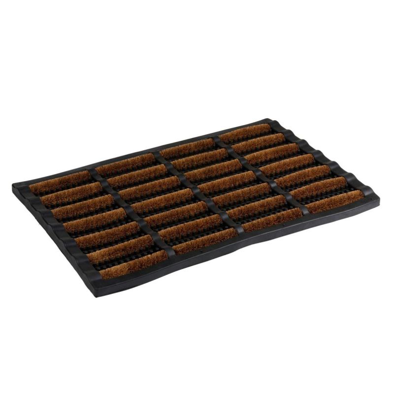 DOBRZE ZATRZYMUJE BRUD - wycieraczka do butów z wółkna kokosowego, świetnie sprawdzi się położona przy drzwiach wejściowych, przyjmie na siebie większość brudu przyniesionego z zewnątrz.