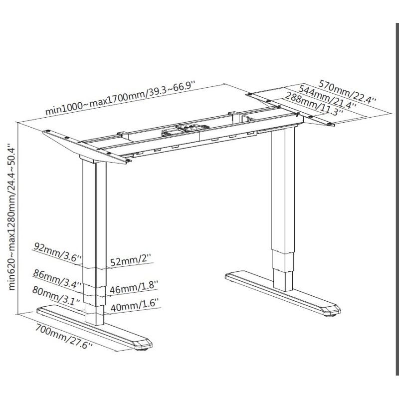 8. Wyposażenie ramy biurka z podwójnym silnikiem elektrycznym 125 kg ws lite Sprzedaż detaliczna