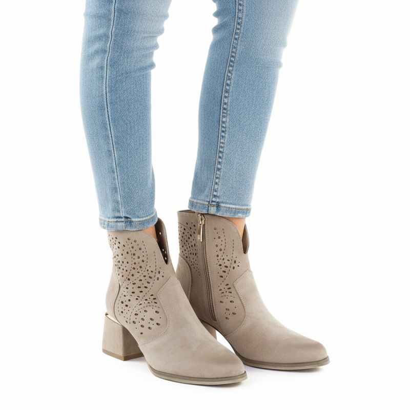 Moda, styl i niezwykła wygoda chodzenia to propozycja botków renomowanej marki Potocki. Cholewka wykonana z wysokiej jakości zamszowej skóry ekologicznej, wkładka ze skóry naturalnej. Cholewka z ciekawym ażurowym zdobieniem doda blasku stylizacji.