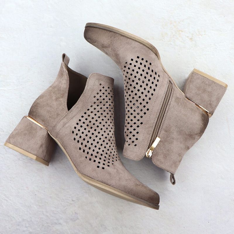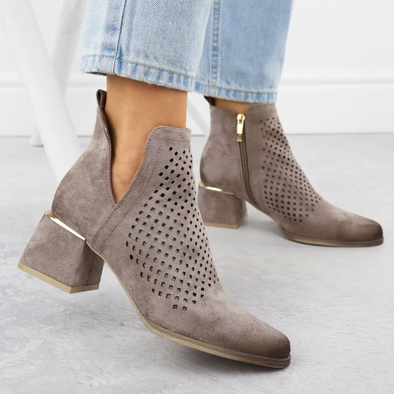 Zamszowe botki damskie na obcasie ażurowe szare Potocki SZ12356