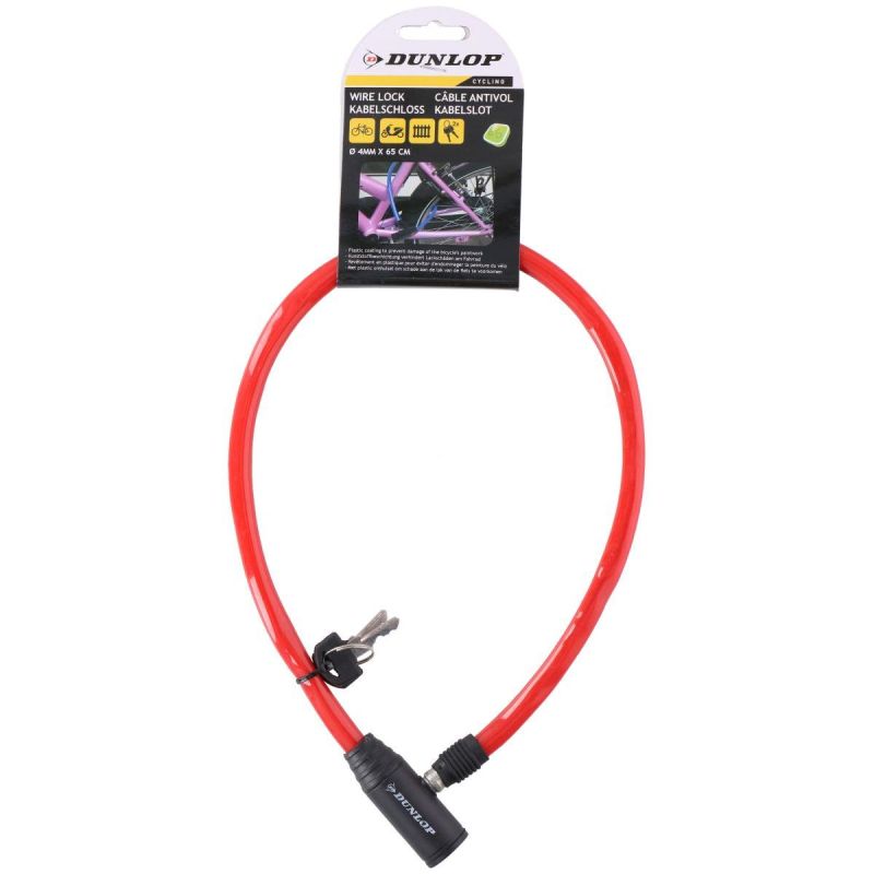 Szukasz uniwersalnego, mocnego zapięcia rowerowego? ZAPIĘCIE ROWEROWE DUNLOP LINKA ZAMEK 0.4x65CM CZERWONY dobrze zabezpieczy kilka jednośladów jednocześnie przed kradzieżą!