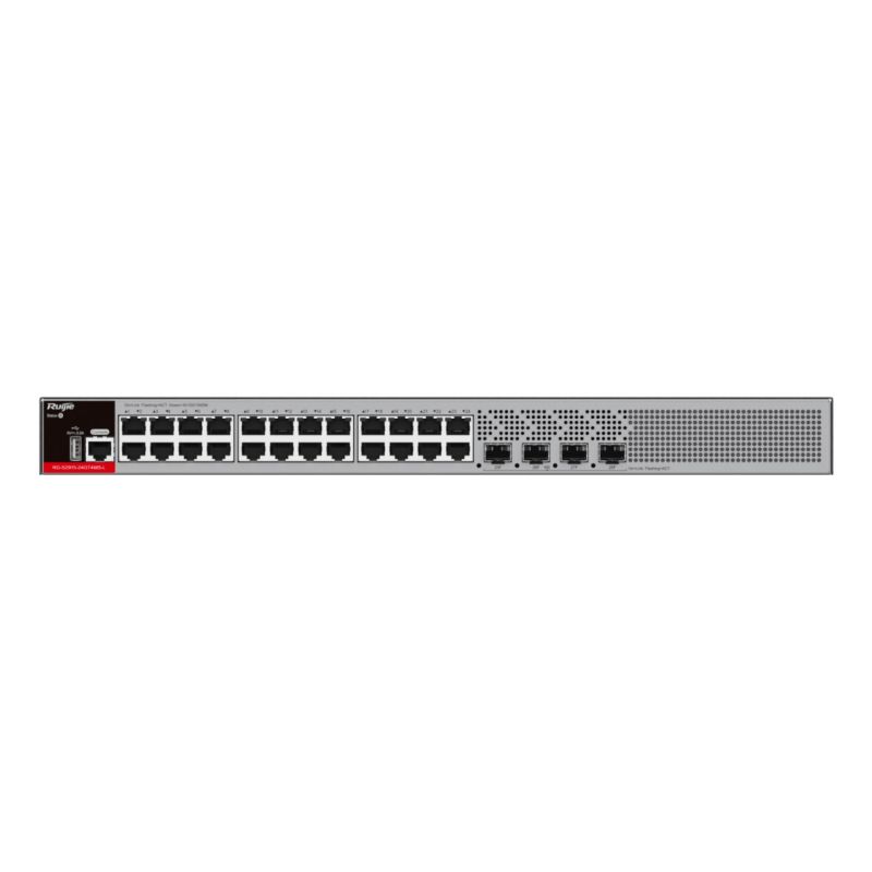 Zarządzalny Switch Ruijie | L2+ | 24 porty 1Gbit + 4 porty SFP 2.5Gbit | 1 wbudowany zasilacz AC | Rack