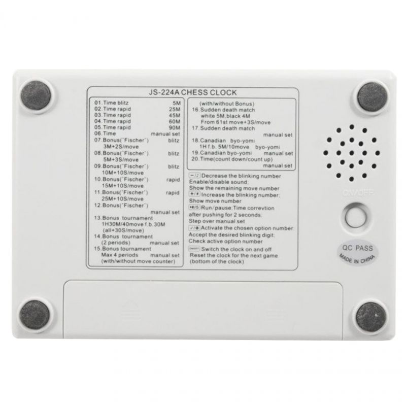 Zegar szachowy Smj JS-224A to profesjonalne urządzenie stosowane podczas międzynarodowych turniejów szachowych oraz innych gier czyli min. warcaby, scrabble.