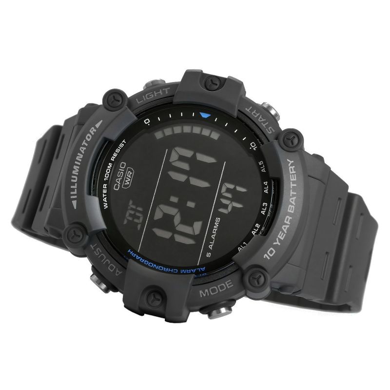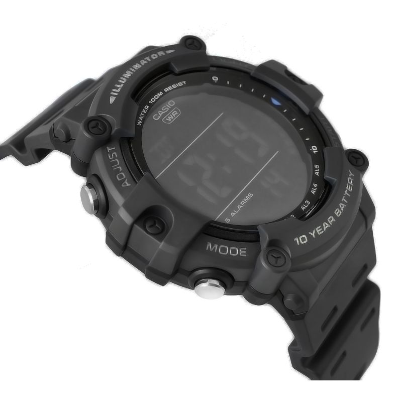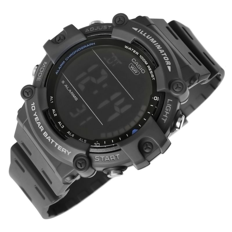 - Tarcza: Kwarcowa. Automatyczny kalendarz: rozbudowany datownik, który automatycznie dopasowuje datę w przypadku krótszych miesięcy; Timer: możliwość odliczania od zaprogramowanego czasu do zera; Zegar 12/24: możliwość wyświetlania godziny w trybach 12 i 24 godzinnych; Stoper: 1/100 mierzy czas do jednej setnej sekundy; Dual-Time: możliwość ustawienia drugiego niezależnego czasu; Alarm: zegarek może sygnałem dźwiękowym informować 5 razy w ciągu doby, w tym tryb drzemki oraz opcja sygnalizacji o pełnych godzinach; Iluminator: możliwość podświetlenia tarczy diodą LED, wytrzymałóśc baterii: 10 lat