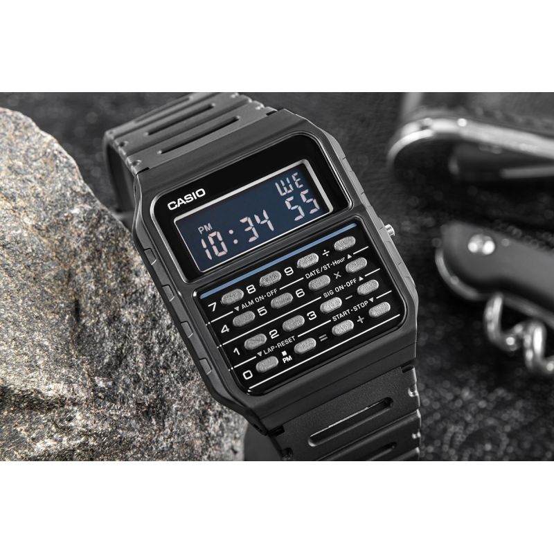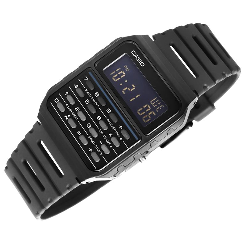 Tarcza zegarka jest czytelna, prosta i praktyczna, co idealnie pasuje do jego kultowego, minimalistycznego designu z lat 80.. Intuicyjne przyciski zapewniają łatwą obsługę, a ich rozmieszczenie pozwala na szybkie wprowadzanie danych. Niezależnie od tego, czy podliczasz wydatki, przeliczasz waluty czy robisz szybkie kalkulacje w pracy – ten zegarek z kalkulatorem zawsze masz pod ręką, gotowy do działania.Górna część ekranu wyświetla dodatkowe funkcje (dzień tygodnia, alarm, stoper), dolna pokazuje aktualny czas w formacie 12/24-godzinnym.