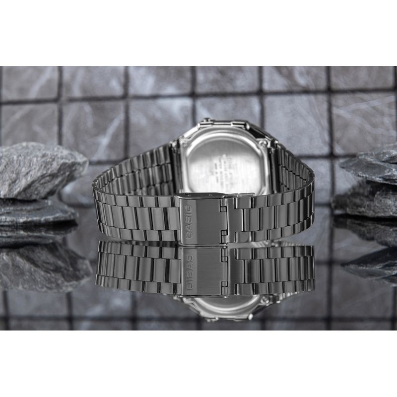 Cyfrowy zegarek dla osób, które cenią ponadczasowy styl i funkcjonalność w codziennym wydaniu. Jego kompaktowa, lekko geometryczna koperta w połączeniu z klasyczną metalową bransoletą nawiązuje do estetyki retro, nadając całości charakteru, który pasuje zarówno do codziennych, jak i bardziej uporządkowanych stylizacji. Model z linii Casio Vintage wyróżnia się czytelnym, cyfrowym wyświetlaczem i smukłą formą, dzięki czemu świetnie prezentuje się na nadgarstku i pozostaje wygodny w noszeniu.