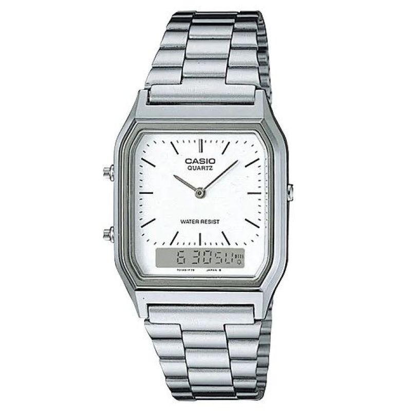 Casio AQ-230 to zegarek, który łączy prestiż, funkcjonalność i ponadczasową estetykę. Idealny wybór dla tych, którzy cenią styl vintage, ale nie chcą rezygnować z nowoczesnych rozwiązań. Casio AQ-230 to nie tylko piękny design, ale również doskonała precyzja działania. Podwójny wyświetlacz analogowo-cyfrowy pozwala na kontrolowanie czasu w dwóch strefach jednocześnie, a dodatkowe funkcje, takie jak alarm, stoper i kalendarz automatyczny, zwiększają jego praktyczność.