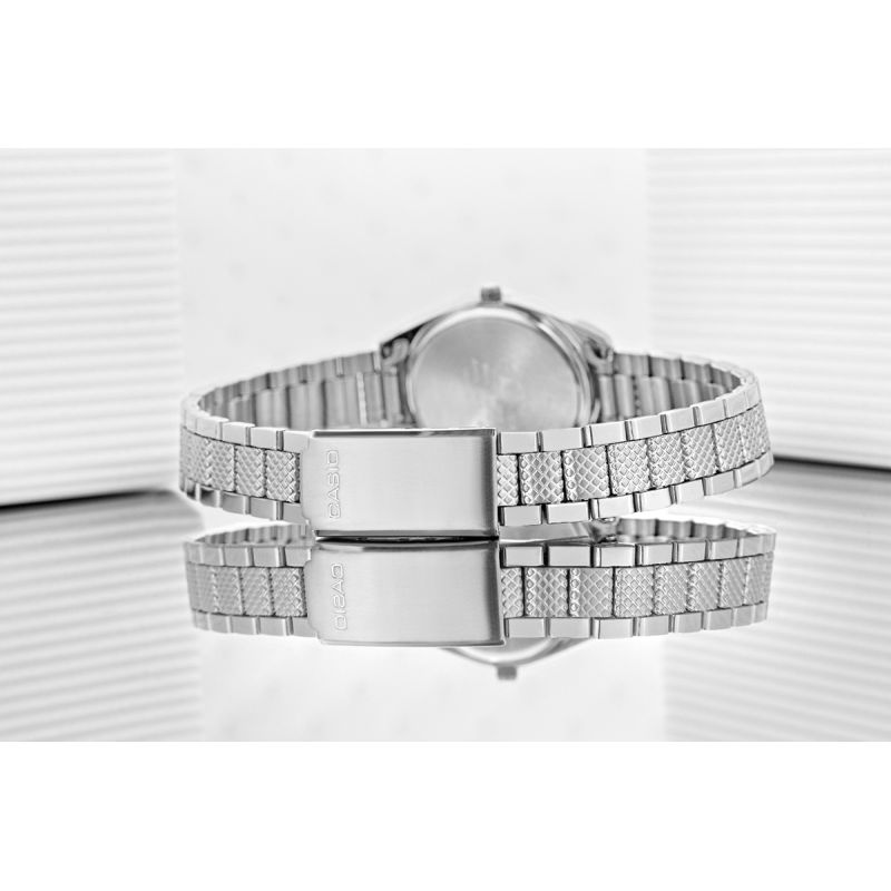 Model zegarka Casio stworzony aby podkreślić kwintesencję elegancji i subtelność kobiecości. Jego niewielka, zgrabna koperta dopasowuje się do kobiecego nadgarstka, delikatnie go oplatając i dodając mu szykownego charakteru. Bransoleta wyróżnia się wyrafinowaną fakturą: gładkie, lśniące ogniwa harmonijnie przeplatają się z subtelnymi, dekoracyjnymi wstawkami, tworząc efekt biżuteryjnej finezji. To doskonały wybór dla kobiet, które cenią klasyczną elegancję w kompaktowym wydaniu.