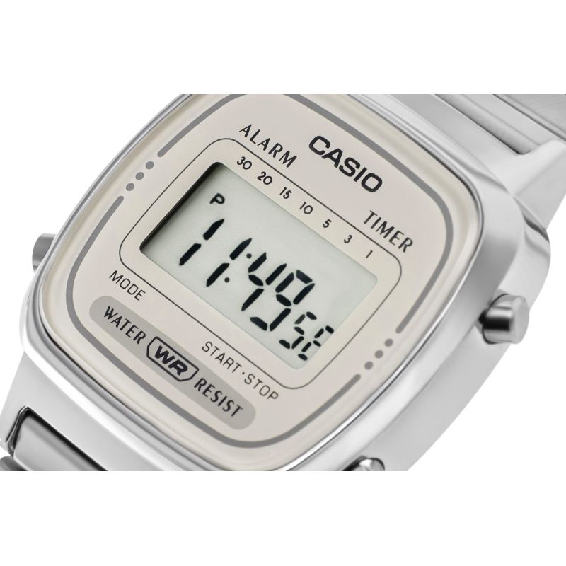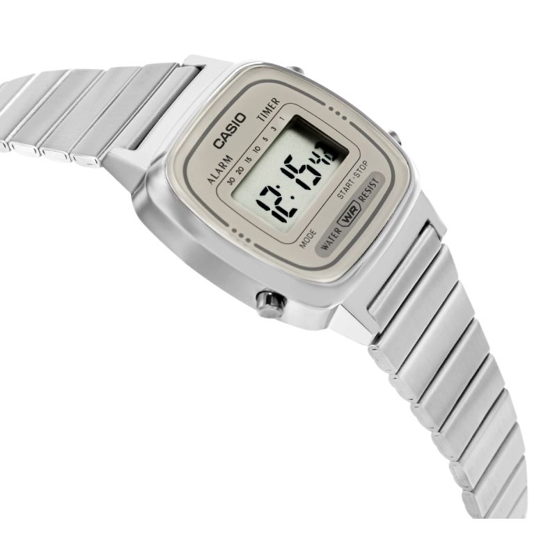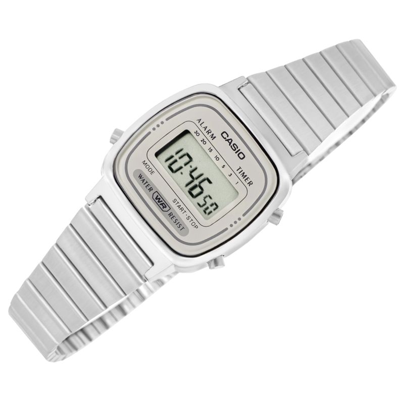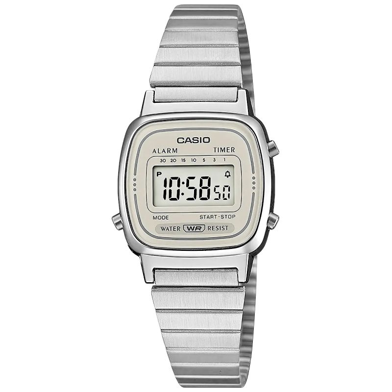 To damski zegarek dla kobiet, które cenią subtelny styl retro i lekką, codzienną elegancję w cyfrowym wydaniu. Smukła, srebrna koperta, jasny wyświetlacz oraz delikatna stalowa bransoleta tworzą spójną, minimalistyczną całość, która bardzo dobrze prezentuje się na nadgarstku. To model o ponadczasowym charakterze, który łączy vintage’owy klimat Casio z prostotą i wygodą noszenia na co dzień.