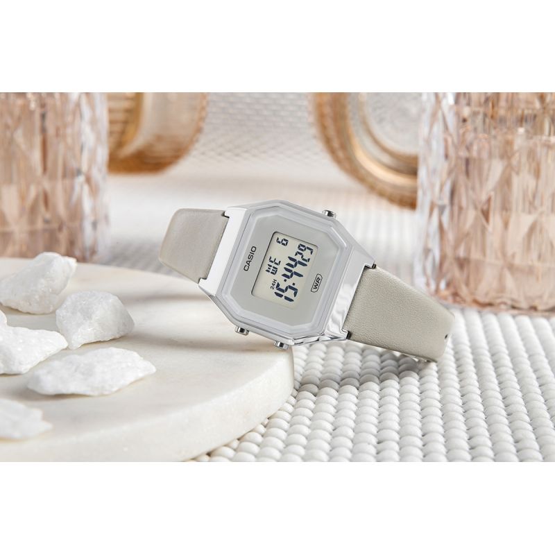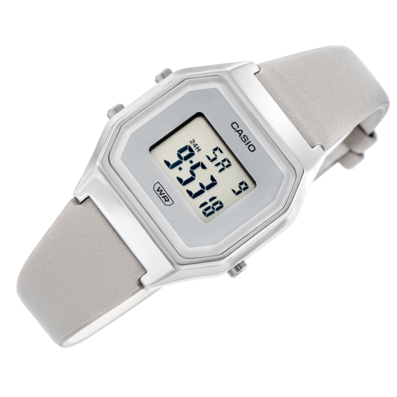 Casio LA680WEL-8EF – dla tych kobiet, które lubią jasne, pastelowe dodatki i srebrny błysk ukryty w codziennych detalach.