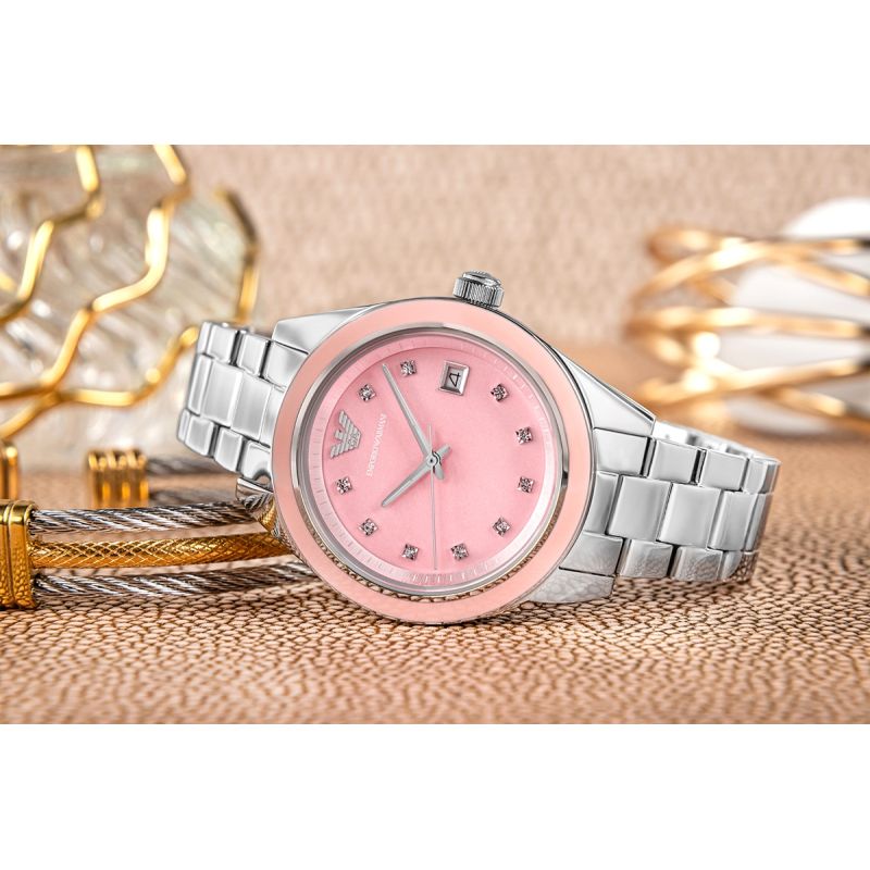 Zegarek Damski Emporio Armani Leo AR11546 to połączenie nowoczesnej elegancji i kobiecego uroku. Zaprojektowany z dbałością o każdy detal, zachwyca subtelną różową tarczą ozdobioną delikatnymi kryształkami, które pięknie odbijają światło. Koperta o średnicy 36 mm wykonana została z wysokiej jakości stali szlachetnej, dzięki czemu zegarek jest trwały i odporny na codzienne użytkowanie. Srebrna bransoleta doskonale komponuje się z kolorem tarczy, tworząc harmonijną i stylową całość. Precyzyjny mechanizm kwarcowy gwarantuje niezawodne działanie, a wodoszczelność na poziomie 5 ATM chroni zegarek przed zachlapaniami i krótkim kontaktem z wodą. Emporio Armani Leo AR11546 to idealny wybór dla kobiet, które cenią elegancję, funkcjonalność i ponadczasowy styl. To nie tylko zegarek, ale biżuteryjny dodatek, który podkreśli każdą stylizację i doda jej luksusowego charakteru.