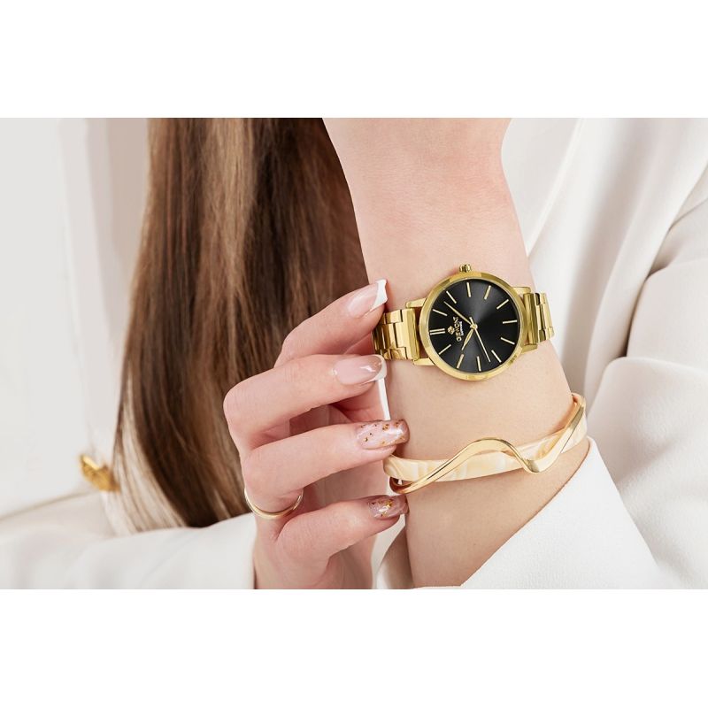 Mocna bransoleta wykonana z perfekcyjnie stali szlachetnej to element, który nie sposób przeoczyć. Każde ogniwo zostało zaprojektowane tak, by doskonale układać się na nadgarstku, zapewniając jednocześnie maksymalny komfort. Nieprzesadzona, doskonała w dotyku, wyrafinowana i solidna - jest jak stalowa obręcz, która mocno trzyma zegarek na Twoim nadgarstku, przypominając Ci o stabilności. Każde ogniwo jest starannie dopracowane, dzięki temu zegarek doskonale pasuje zarówno do codziennych, jak i formalnych stylizacji. Precyzyjnie wykonane zapięcie dopełnia ten mocny, kobiecy charakter zegarka.