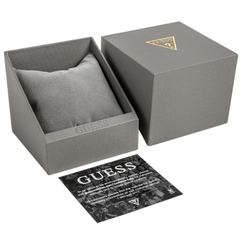 Z zegarkiem otrzymasz stylowe, firmowe pudełko Guess. To eleganckie opakowanie stanowi idealne uzupełnienie, które sprawia, że zegarek staje się gotowym, luksusowym prezentem. Cały zestaw podkreśla wyjątkowy charakter i klasę marki Guess.