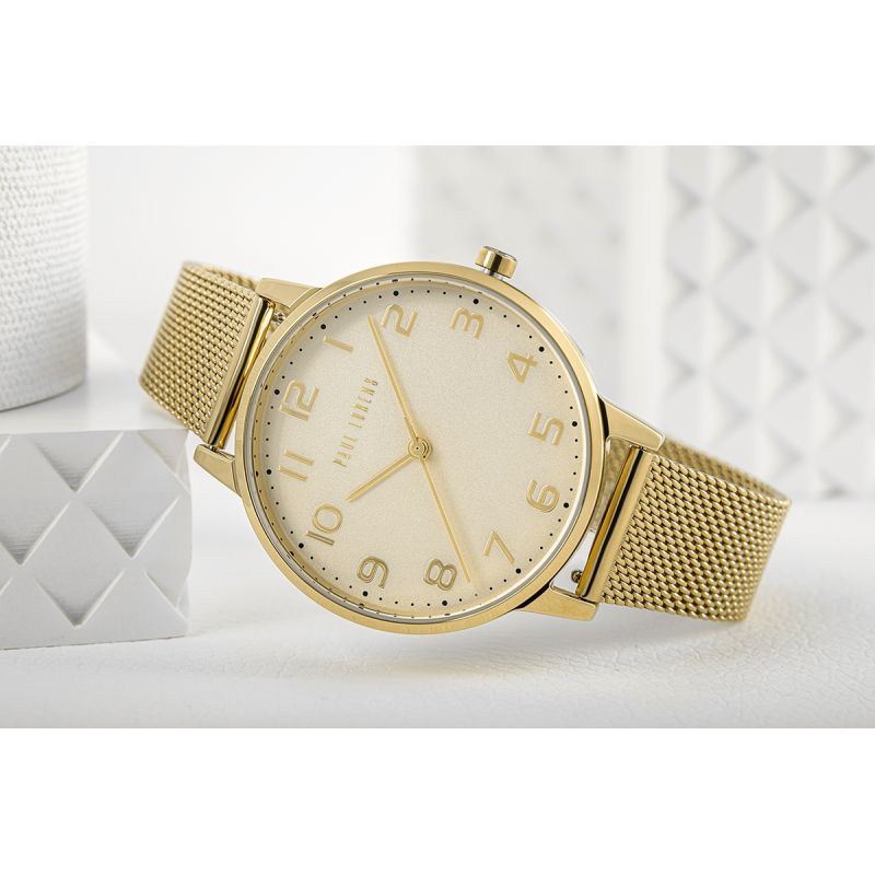 Zegarek minimalistyczny Paul Lorens PL11715B2-4D1 w złotej kolorystyce to idealny wybór dla kobiet, które cenią sobie luksus i elegancję w najczystszej formie. Design zegarka pozbawiony jest zbędnych udziwnień – tylko to, co istotne: złote wskazówki oraz precyzyjny sekundnik z wdziękiem sunące po lśniącej, złotej tarczy.