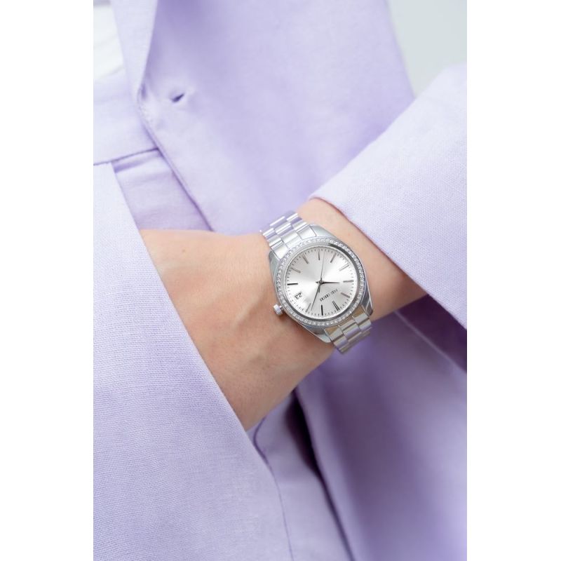 Jej gładka, delikatnie połyskująca powierzchnia harmonijnie oplata nadgarstek, zapewniając komfort noszenia przez cały dzień. Dziękiprecyzyjnemu wyprofilowaniu idealnie dopasowuje się do kobiecej dłoni, subtelnie podkreślając smukłość nadgarstka i dodając każdej stylizacji elegancji. Stal nierdzewna łączy w sobie zarówno wytrzymałość, jak i lekkość, co sprawia, że zegarek nosi się z wyjątkową wygodą. Design bransolety idealnie balansuje pomiędzy luksusem a codzienną prostotą, sprawiając, że ten model zegarka jest idealny zarówno na wieczorne wyjścia, jak i na co dzień. Całość dopełnia logo Paul Lorens na zapięciu bransolety.