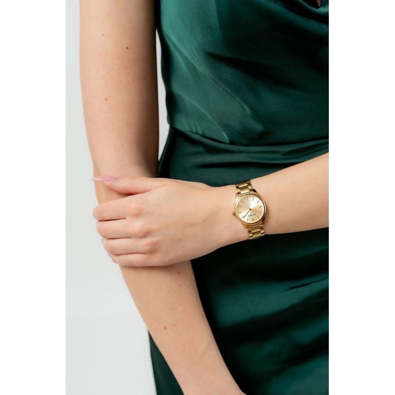 Jej gładka, delikatnie połyskująca powierzchnia harmonijnie oplata nadgarstek, zapewniając komfort noszenia przez cały dzień. Dziękiprecyzyjnemu wyprofilowaniu idealnie dopasowuje się do kobiecej dłoni, subtelnie podkreślając smukłość nadgarstka i dodając każdej stylizacji elegancji. Stal nierdzewna łączy w sobie zarówno wytrzymałość, jak i lekkość, co sprawia, że zegarek nosi się z wyjątkową wygodą. Design bransolety idealnie balansuje pomiędzy luksusem a codzienną prostotą, sprawiając, że ten model zegarka jest idealny zarówno na wieczorne wyjścia, jak i na co dzień. Całość dopełnia logo Paul Lorens na zapięciu bransolety.