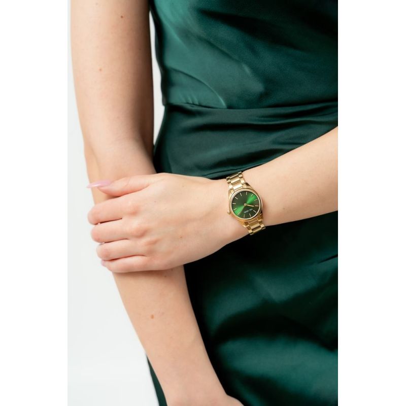 Jej gładka, delikatnie połyskująca powierzchnia harmonijnie oplata nadgarstek, zapewniając komfort noszenia przez cały dzień. Dziękiprecyzyjnemu wyprofilowaniu idealnie dopasowuje się do kobiecej dłoni, subtelnie podkreślając smukłość nadgarstka i dodając każdej stylizacji elegancji. Stal nierdzewna łączy w sobie zarówno wytrzymałość, jak i lekkość, co sprawia, że zegarek nosi się z wyjątkową wygodą. Design bransolety idealnie balansuje pomiędzy luksusem a codzienną prostotą, sprawiając, że ten model zegarka jest idealny zarówno na wieczorne wyjścia, jak i na co dzień. Całość dopełnia logo Paul Lorens na zapięciu bransolety.
