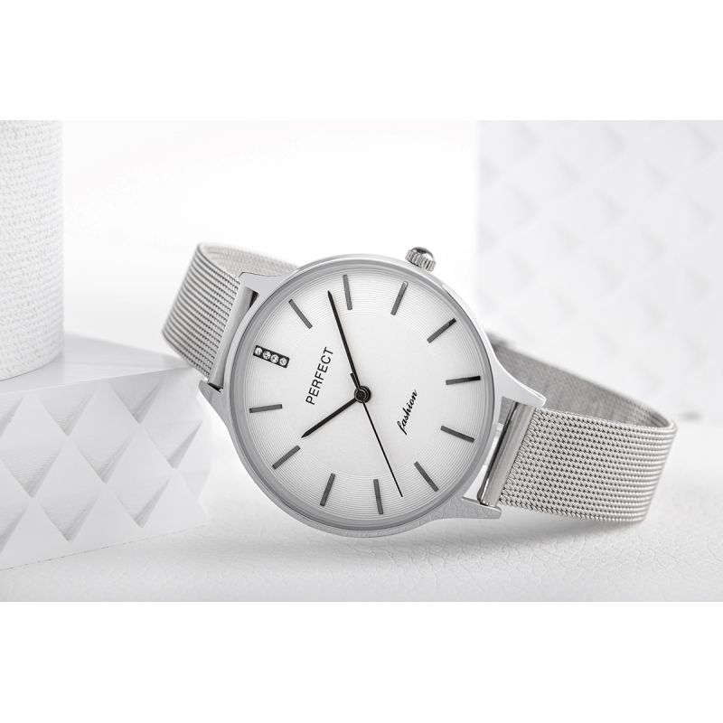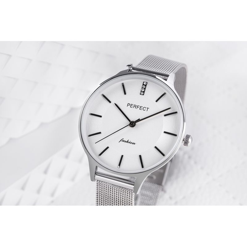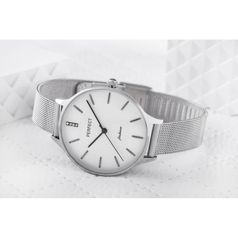 Wykonana z wysokiej jakości stali, idealnie dopasowuje się do damskiego nadgarstka, zapewniając wygodę noszenia przez cały dzień. Jej elegancka struktura i zapięcie ozdobione logiem marki Perfect dodają zegarkowi wyjątkowego stylu i wyróżniają go na tle innych.