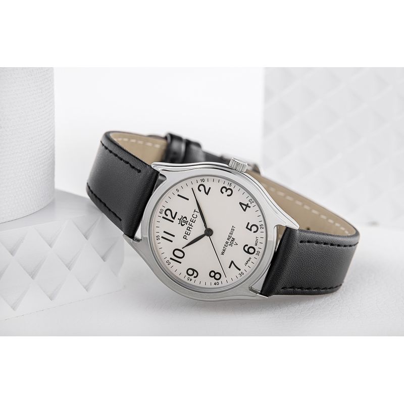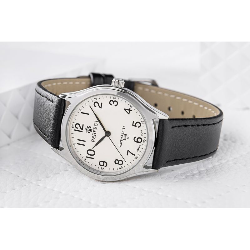 Skórzany pasek tego zegarka to kwintesencja klasy i wygody. Wykonany z najwyższej jakości materiału, komfortowo dopasowuje się do nadgarstka, oferując nie tylko trwałość, ale też elegancki wygląd. Jego miękkość zapewnia komfort noszenia na co dzień, a perfekcyjne wykończenie podkreśla charakterystyczny styl marki Perfect.
