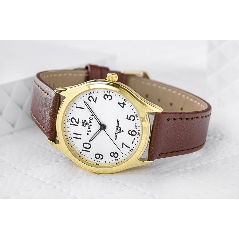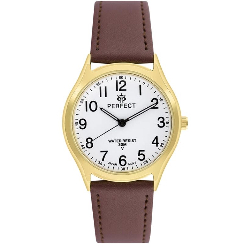 Skórzany pasek tego zegarka to kwintesencja klasy i wygody. Wykonany z najwyższej jakości materiału, komfortowo dopasowuje się do nadgarstka, oferując nie tylko trwałość, ale też elegancki wygląd. Jego miękkość zapewnia komfort noszenia na co dzień, a perfekcyjne wykończenie podkreśla charakterystyczny styl marki Perfect.