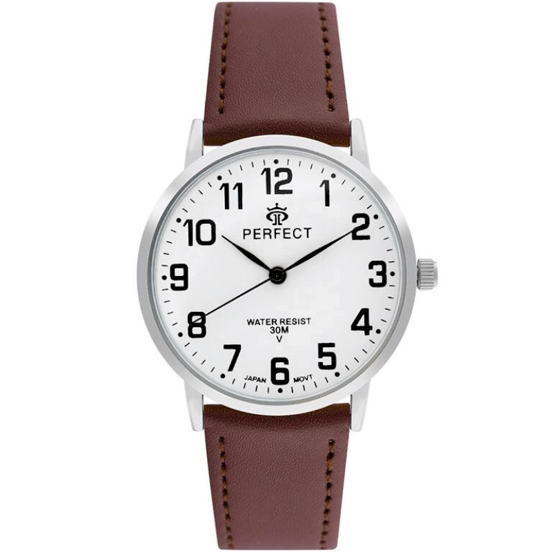 Skórzany pasek tego zegarka to kwintesencja klasy i wygody. Wykonany z najwyższej jakości materiału, komfortowo dopasowuje się do nadgarstka, oferując nie tylko trwałość, ale też elegancki wygląd. Jego miękkość zapewnia komfort noszenia na co dzień, a perfekcyjne wykończenie podkreśla charakterystyczny styl marki Perfect.