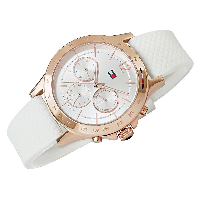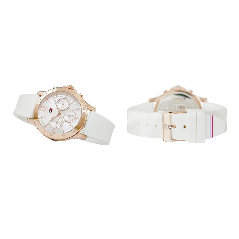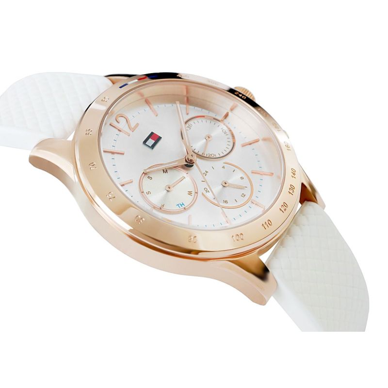 Zegarek Damski Tommy Hilfiger Haven 1782199 wyposażony jest w działające chronografy: czasu dobowego 12/24h- wyświetlanie godziny z uwzględnieniem całej doby umożliwia rozróżnienie godzin przed i popołudniowych oraz datownikiem dni tygodnia i miesiąca.