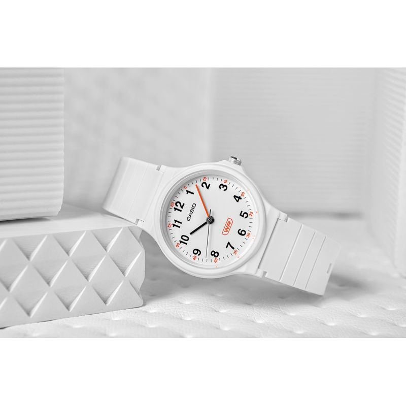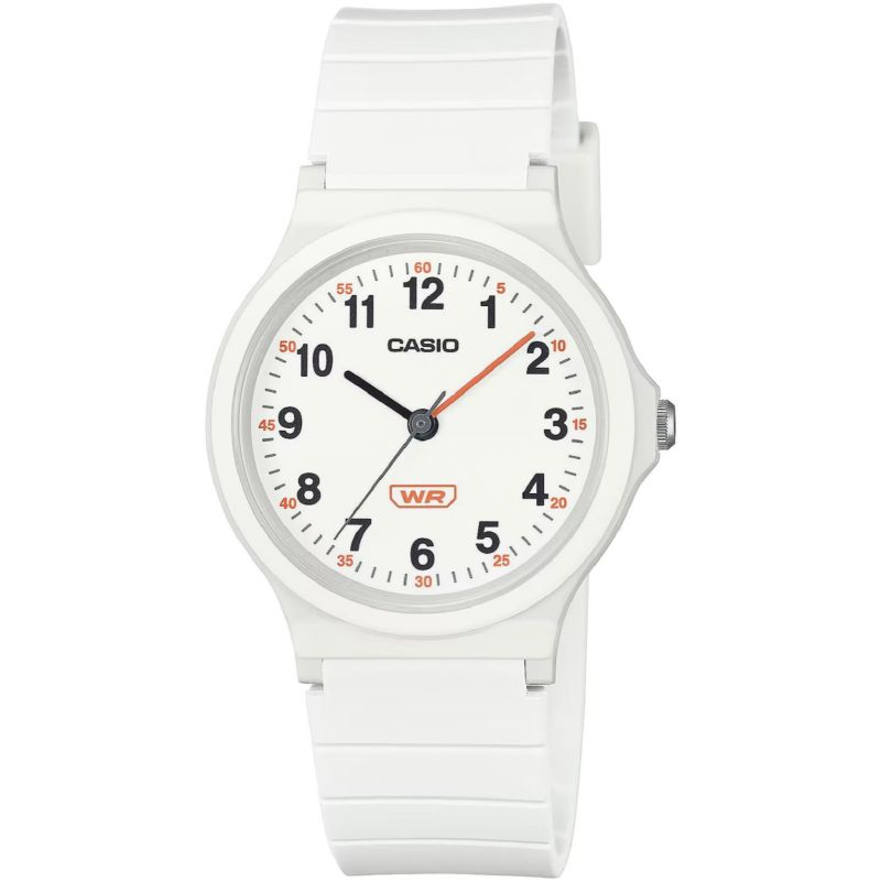 Casio LQ-24B-1BDF to zegarek, który łączy prostotę designu z niezawodnością, stworzony z myślą o młodszych użytkownikach i ich potrzebach. Klasyczna jednokolorowa tarcza z wyraźnymi, czarnymi cyframi ułatwia szybki i czytelny odczyt czasu, co czyni go idealnym dodatkiem dla dzieci lub młodzieży. Cienki i kompaktowy design koperty świetnie leży na mniejszych nadgarstkach, podkreślając uniwersalny charakter tego modelu.