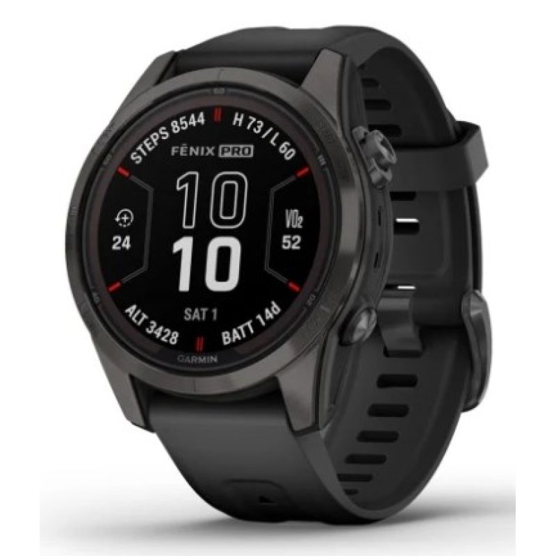 Zegarek Garmin Fenix 7S Pro 42mm Sapphire Solar szary tytanowy DLC z czarnym paskiem
