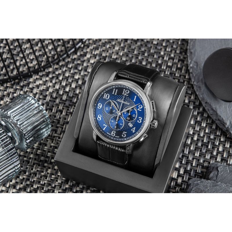 Oparta na klasycznym układzie trzech wskazówek – godzinowej, minutowej i sekundowej – kompozycja tarczy zachwyca klarownością i równowagą formy. Każdy detal – od proporcji cyfr, widoczności chronografów, aż po subtelny ruch wskazówek – odsłania kunszt szwajcarskiej precyzji, gdzie forma i treść idą w parze, tworząc styl, który opiera się chwilowym modom.