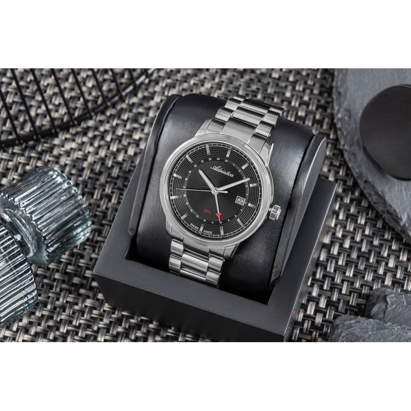 Do zegarka otrzymujesz eleganckie, firmowe pudełko Adriatica w klasycznej czarno-kremowej kolorystyce, ozdobione subtelnym logo marki. Całość doskonale oddaje szwajcarską precyzję i prestiż marki Adriatica. W zestawie znajduje się również elegancka, firmowa ściereczka z mikrofibry – idealna do pielęgnacji tarczy i bransolety zegarka, by zachować jego blask na co dzień.
