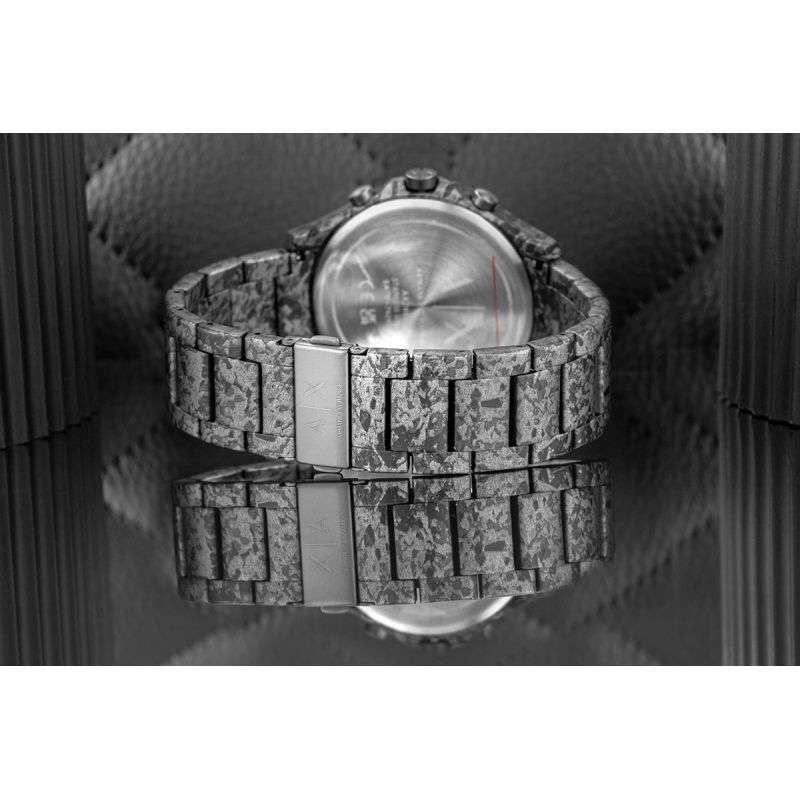 Masywna koperta z unikalnym, strukturalnym wykończeniem przypominającym betonową powierzchnię sprawia, że ten model wyróżnia się na tle klasycznych czasomierzy. Surowy, kamienny desing zegarka AX2462 pobudza zmysł wzroku, przypominając o sile i niezłomności męskiego charakteru. Głęboka czerń teksturowanej tarczy hipnotyzuje wzrok, a precyzyjne wskazówki kuszą obietnicą perfekcji w każdym detalu. Chłodny ciężar bransolety na nadgarstku to pewność, jaką daje niezawodność i styl, który nie uznaje kompromisów. To zegarek dla mężczyzny, który wie, że prawdziwa moc tkwi w szczegółach.