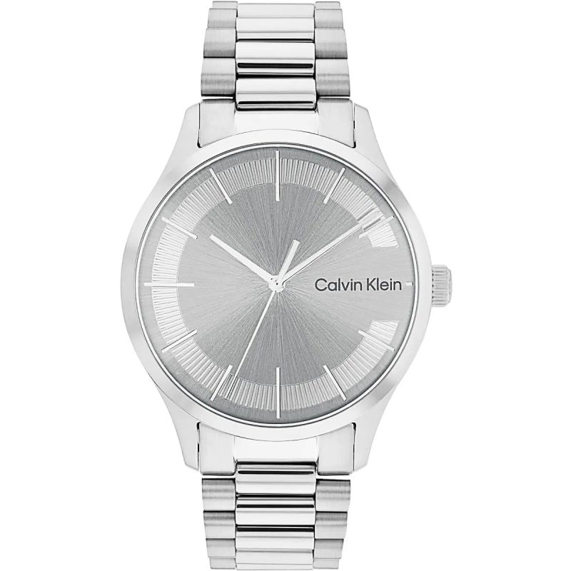 Model CALVIN KLEIN Iconic Brancelet to kwintesencja męskiego stylu – minimalistyczny, ale z wyrazistym charakterem. Tarcza przyciąga uwagę unikalną fakturą ułożoną w kształt litery „C”, co nie tylko nadaje jej nowoczesnego sznytu, ale i sprawia, że całość nabiera niepowtarzalnego stylu. Efekt promienistego szlifu, rozchodzący się z centralnego punktu, tworzy efekt świetlnego wachlarza, który nadaje głębi i energii, podkreślając dynamiczny charakter czasomierza. Chłodna, stalowa kolorystyka zegarka buduje spójną, elegancką kompozycję, idealną zarówno do garnituru, jak i casualowych stylizacji.