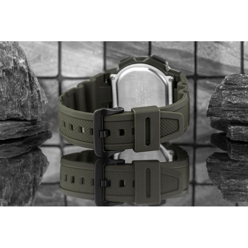Dzięki 5 alarmom dziennym lub jednorazowym oraz sygnałowi godzinowemu zapewnia pełną kontrolę nad czasem. Podświetlenie LED z możliwością wyboru czasu świecenia i efektem poświaty w bursztynowym kolorze ułatwia korzystanie w ciemności. Pełny kalendarz automatyczny działa aż do 2099 roku, a funkcja wyciszenia pozwala na wyłączenie dźwięków przycisków. Dokładność zegarka wynosi ±30 sekund na miesiąc, a dodatkowe funkcje obejmują format 12-/24-godzinny oraz standardowe wskazanie czasu (godzina, minuta, sekunda, PM, miesiąc, data, dzień tygodnia).