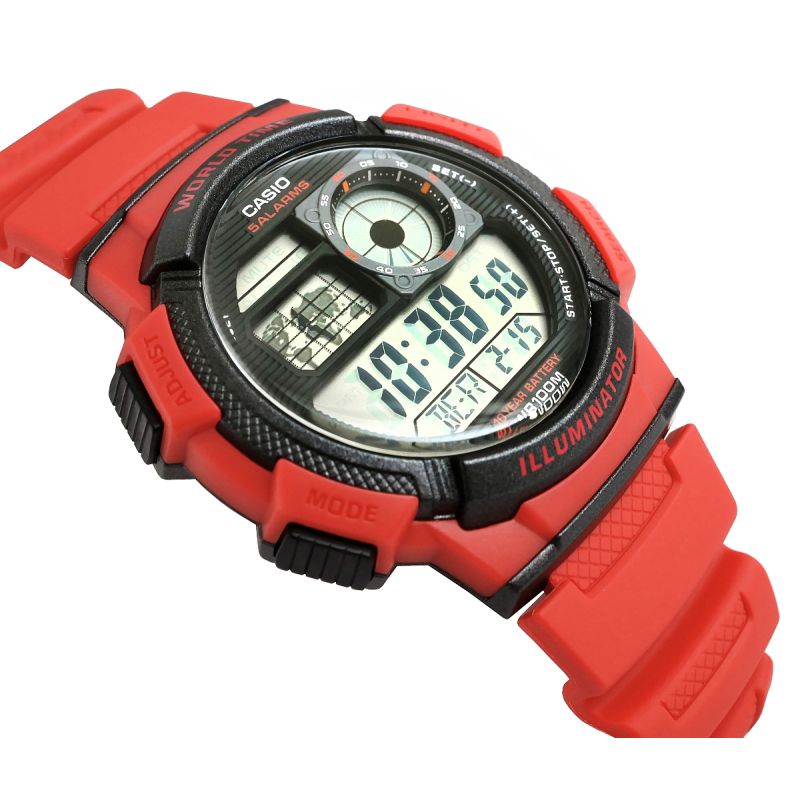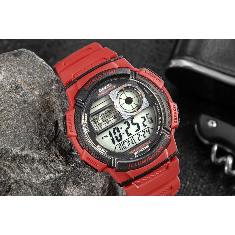 Model CASIO z Multi Time, światowym czasem, stoperem, alarmem x 5 i minutnikiem - a to wszystko 10 lat na jednej baterii. Casio AE-1000W to zegarek, który nadąża za Tobą - tarcza inspirowana kokpitem samolotu nadaje mu surowy, techniczny charakter, który podkreśla męski styl i dynamiczny tryb życia. Dzięki mapie świata i funkcji World Time możesz jednym rzutem oka sprawdzić czas w różnych strefach, co sprawia, że to idealny wybór dla podróżników i profesjonalistów pracujących na międzynarodową skalę. Wyświetlacz LC Analog sprawia, że zawsze masz pod ręką godzinę swojego miasta domowego, a wodoodporność do 100 metrów pozwala na swobodne użytkowanie zegarka w trudniejszych warunkach. To zegarek dla mężczyzn, którzy oczekują więcej – precyzji, trwałości i stylu.