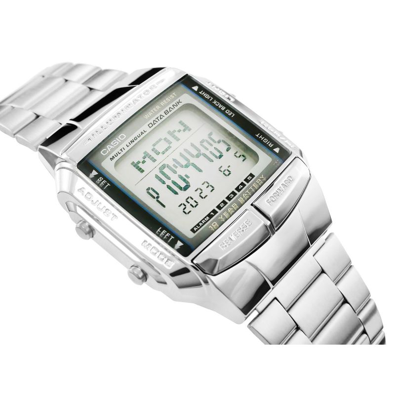 - Tarcza: Kwarcowa. TELEMEMO: pojemność pamięci: do 30 zestawów danych, z 8-znakowymi nazwami i 15-cyfrowym numerem telefonu; DUAL TIME: możliwość ustawienia dodatkowego czasu w innej strefie czasowej; MULTI LANGUAGE: wyświetlanie dnia tygodnia w różnych językach w tym j. polskim; stoper: z dokładnością do 1/100 s mierzący do 24 godzin; timer: Odmierza czas wstecz od 24 godzin do 1 minuty z dokładnością do 1 sekundy; alarm: pięć niezależnych alarmów ustawianych na dowolną godzinę i datę; sygnał pełnej godziny; kalendarz automatyczny: sam automatycznie dostosowuje datę w przypadku krótszych lub dłuższych miesięcy; tryb wyświetlania godziny: tryb wyświetlania godziny w formacie 12 lub 24-godzinnym;