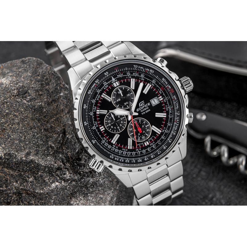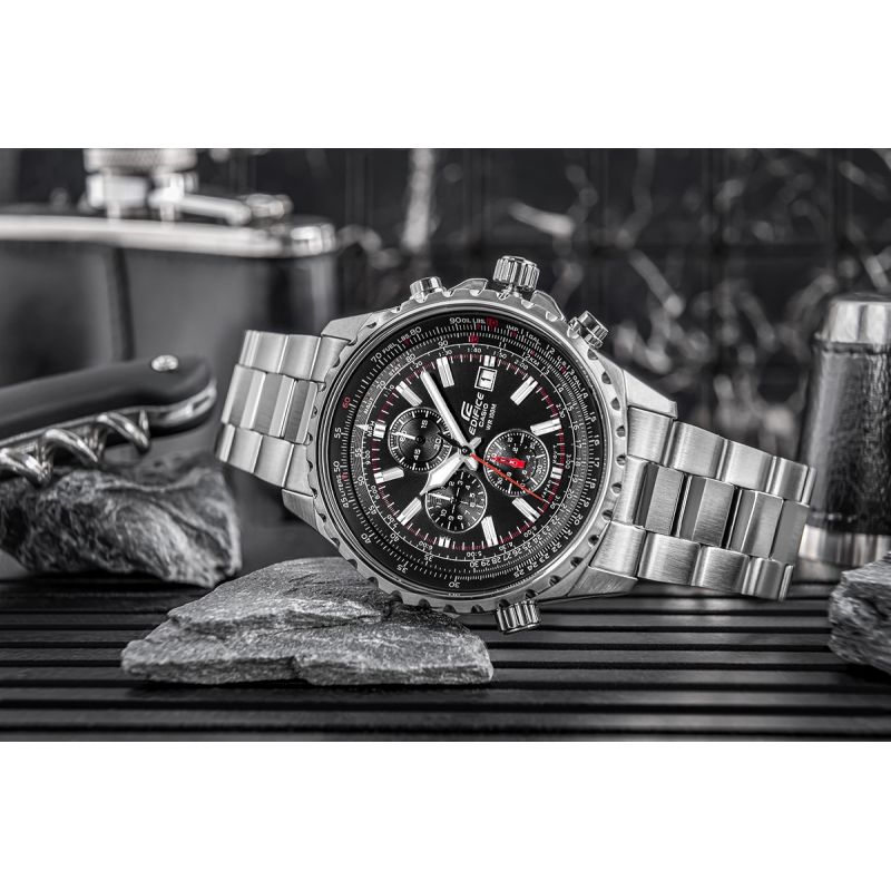 CASIO EDIFICE udowadnia swoją wszechstronność.Bez względu na to, czy postawisz na klasyczny model ze stalową bransoletą, sportowy wariant z elastycznym paskiem, czy elegancką wersję na pasku ze skóry naturalnej – każdyEDIFICE na nadgarstku łączy sportowy styl z wyrafinowanym wyglądem.
