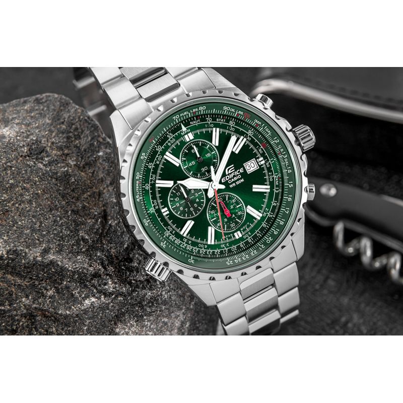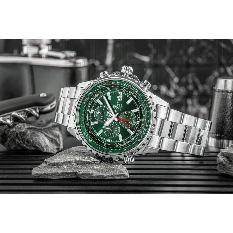 CASIO EDIFICE udowadnia swoją wszechstronność.Bez względu na to, czy postawisz na klasyczny model ze stalową bransoletą, sportowy wariant z elastycznym paskiem, czy elegancką wersję na pasku ze skóry naturalnej – każdyEDIFICE na nadgarstku łączy sportowy styl z wyrafinowanym wyglądem.