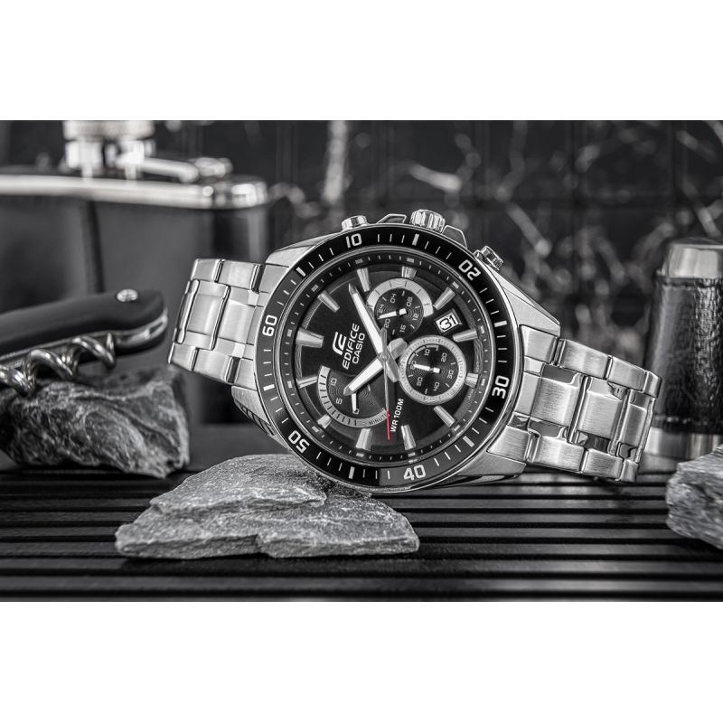 CASIO EDIFICE udowadnia swoją wszechstronność.Bez względu na to, czy postawisz na klasyczny model ze stalową bransoletą, sportowy wariant z elastycznym paskiem, czy elegancką wersję na pasku ze skóry naturalnej – każdyEDIFICE na nadgarstku łączy sportowy styl z wyrafinowanym wyglądem.