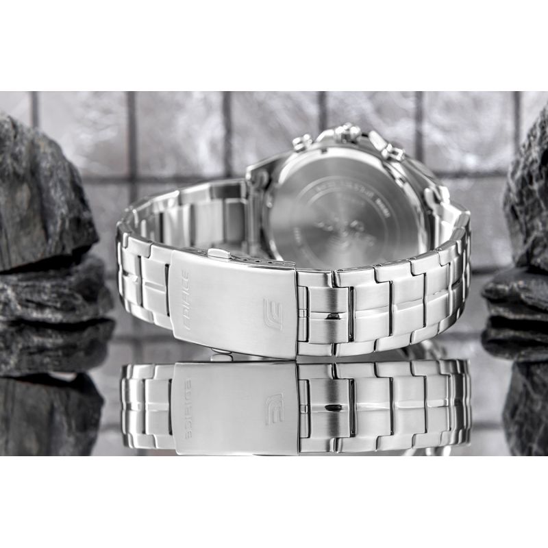 W niektórych modelach zastosowano zakręcany dekiel, który zapewnia maksymalne bezpieczeństwo i wygodę — chroniąc precyzyjne mechanizmy, i umożliwiając łatwą wymianę baterii. Zegarki CASIO EDIFICE charakteryzują się wodoszczelnością na poziomie 10 BAR, a niektóre modele nawet do 20 BAR, dzięki czemu sprawdzają się zarówno na co dzień, jak i w wymagających warunkach.