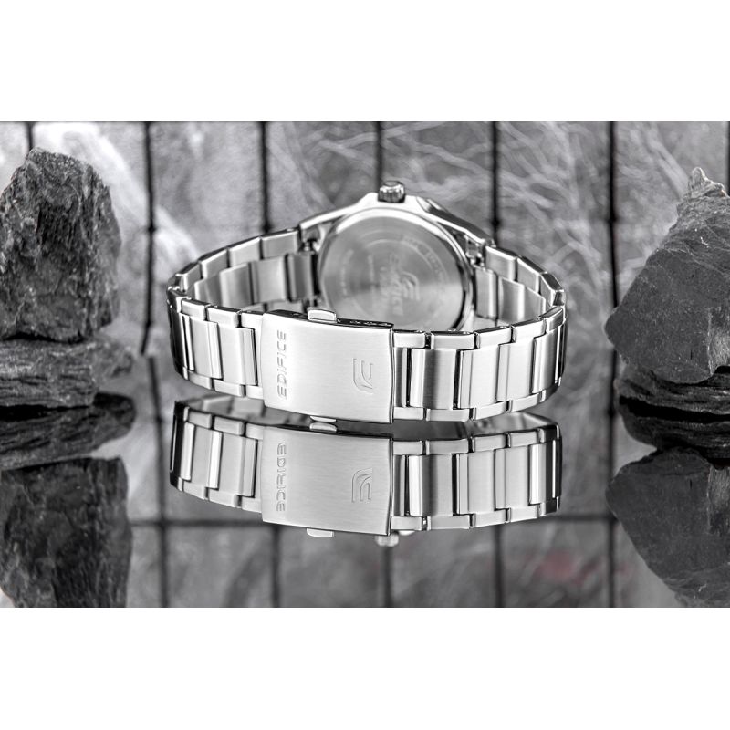 W niektórych modelach zastosowano zakręcany dekiel, który zapewnia maksymalne bezpieczeństwo i wygodę — chroniąc precyzyjne mechanizmy, i umożliwiając łatwą wymianę baterii. Zegarki CASIO EDIFICE charakteryzują się wodoszczelnością na poziomie 10 BAR, a niektóre modele nawet do 20 BAR, dzięki czemu sprawdzają się zarówno na co dzień, jak i w wymagających warunkach.