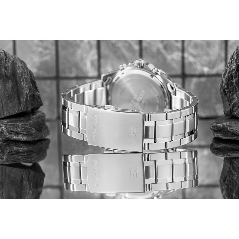 W niektórych modelach zastosowano zakręcany dekiel, który zapewnia maksymalne bezpieczeństwo i wygodę — chroniąc precyzyjne mechanizmy, i umożliwiając łatwą wymianę baterii. Zegarki CASIO EDIFICE charakteryzują się wodoszczelnością na poziomie 10 BAR, a niektóre modele nawet do 20 BAR, dzięki czemu sprawdzają się zarówno na co dzień, jak i w wymagających warunkach.