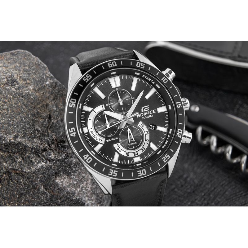 CASIO EDIFICE udowadnia swoją wszechstronność.Bez względu na to, czy postawisz na klasyczny model ze stalową bransoletą, sportowy wariant z elastycznym paskiem, czy elegancką wersję na pasku ze skóry naturalnej – każdyEDIFICE na nadgarstku łączy sportowy styl z wyrafinowanym wyglądem.