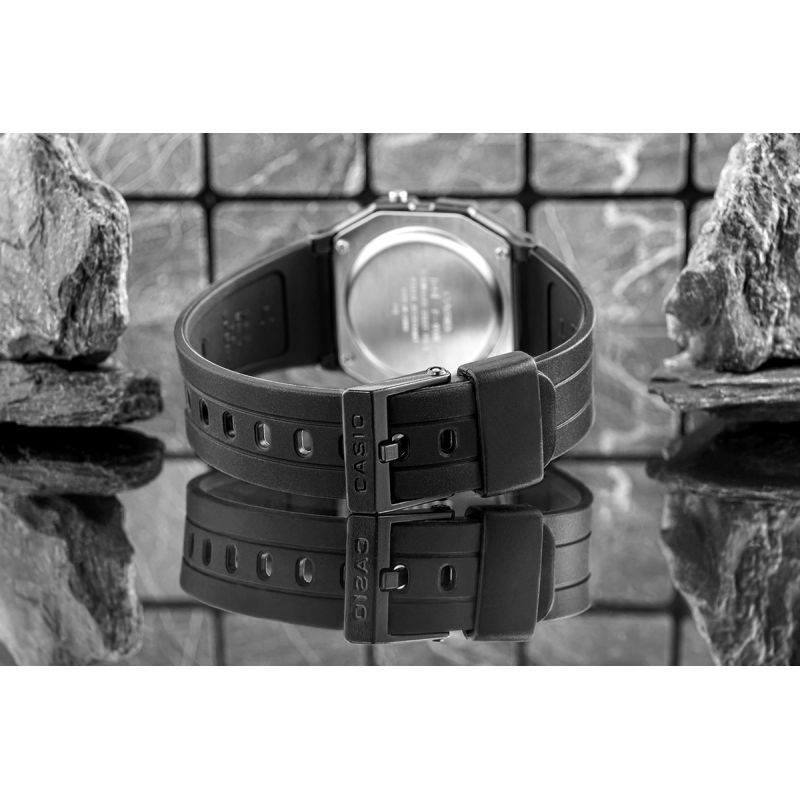 Czytelny wyświetlacz LCD zapewnia łatwy odczyt godziny w formacie 12- lub 24-godzinnym, a jego układ jest intuicyjny i funkcjonalny. Górna część ekranu wyświetla informacje o dniu tygodnia, alarmie oraz funkcjach dodatkowych, natomiast dolna wskazuje aktualny czas. Zegarek jest wyposażony w podświetlenie LED, które pozwala na odczyt godziny w warunkach słabego oświetlenia. Podświetlenie to jest jednopunktowe i znajduje się po lewej stronie wyświetlacza, co oznacza, że bardziej intensywnie oświetla jego część. Jest to klasyczny zielonkawy LED, który nadaje zegarkowi charakterystyczny retro wygląd.
