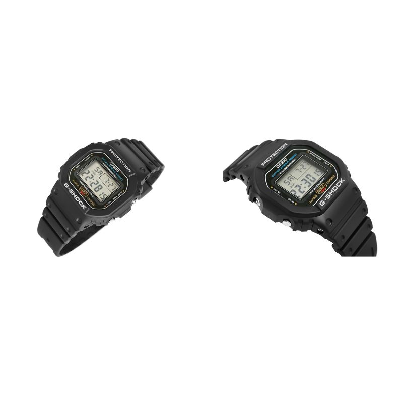 Zegarek Męski CASIO G-SHOCK DW-5600UE-1ER + BOX wyposażony jest w: Czas dobowy 12/24h; Funkcja migania diody LED; LED Indicator; Vibration Resistant; 1 multialarm; Rozbudowany kalendarz; Stoper- do 24h, 1/100 sek.; Timer- 24h; Wstrząsoodporność.