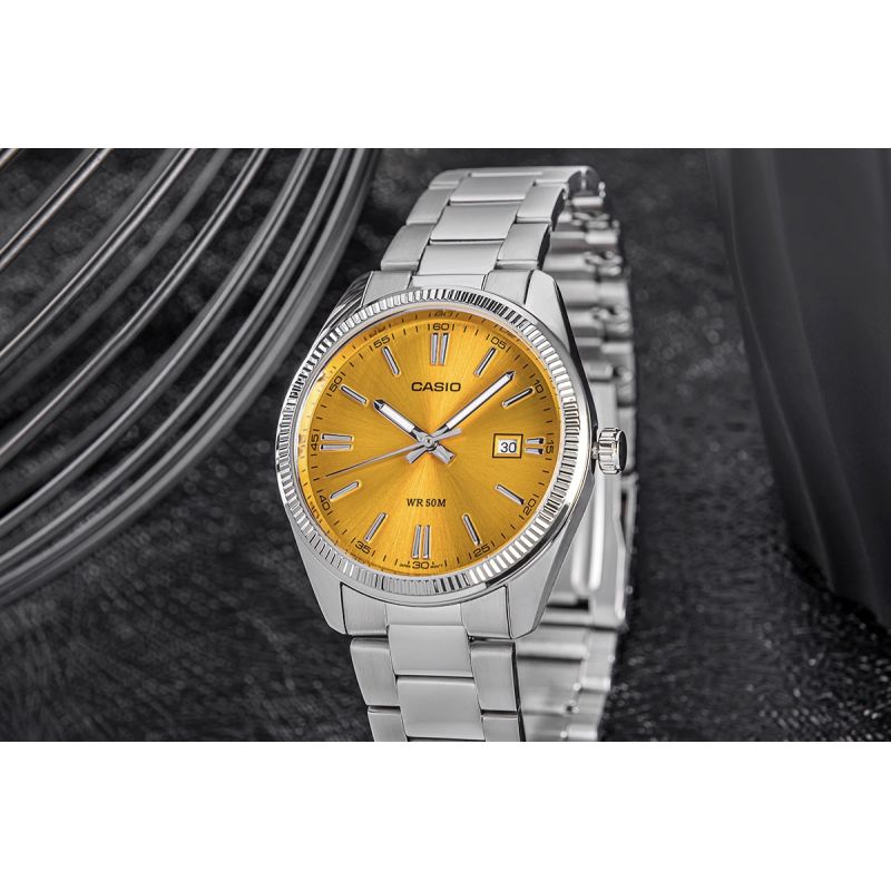 Zegarek Męski Casio MTP-1302PD-9AVEF to klasyczny czasomierz, który łączy elegancję z prostotą, idealnie wpisując się w styl nowoczesnego mężczyzny ceniącego wyrafinowany design i niezawodność. Model ten wyróżnia się elegancką, złotą tarczą o delikatnym połysku, która kontrastuje z solidną, srebrną bransoletą ze stali nierdzewnej, nadając mu wyjątkowy charakter.